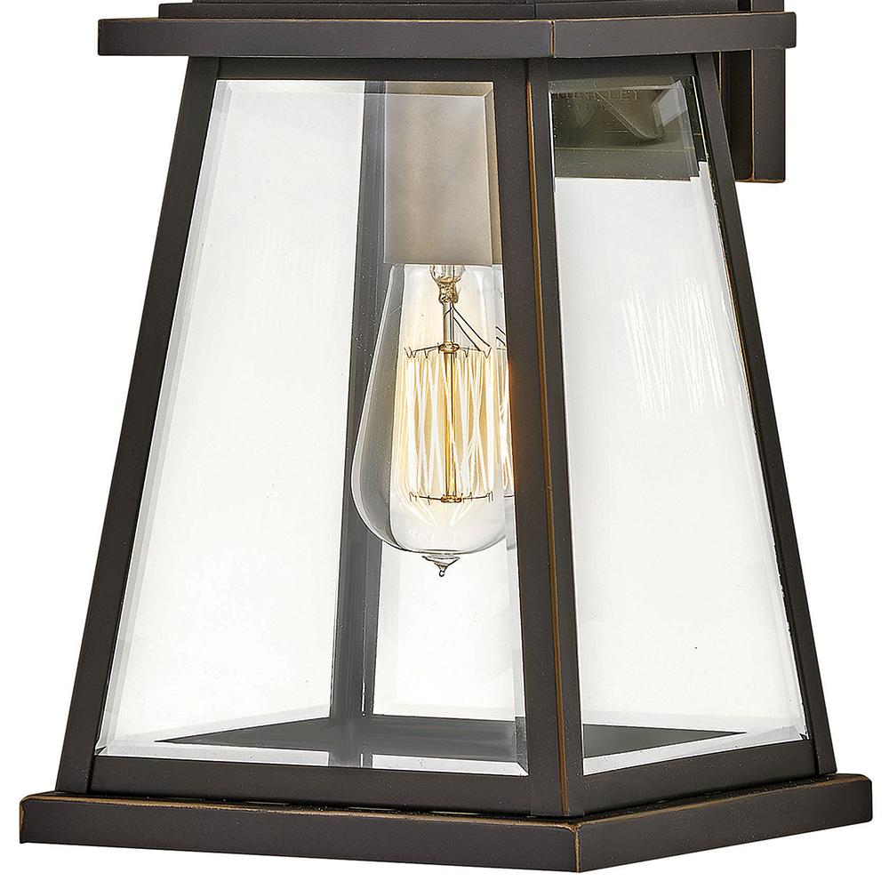 Bainbridge seamlessly blends sophisticated traditional details with crisp modern elements. The sleek architectural lines amplify a robust, durable Oil Rubbed Bronze finish, which is complemented by an accent finish of Heritage Brass for a refined, polished presence. The generously scaled four-sided beveled glass panels allow maximum illumination and enhance this versatile yet timeless look.