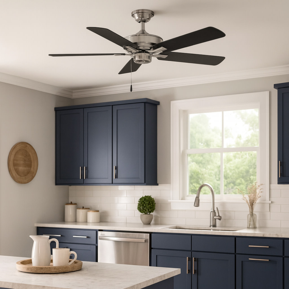 Metro evokes a sense of timeless tradition to interiors of all styles. Metro is available in Brushed Nickel with Silver or Matte Black blades, Chalk White with Chalk White or Weathered Wood blades, Matte Black with Matte Black or Walnut blades, Metallic Matte Bronze with Metallic Matte Bronze or Walnut blades. Metro is part of the Regency Collection.