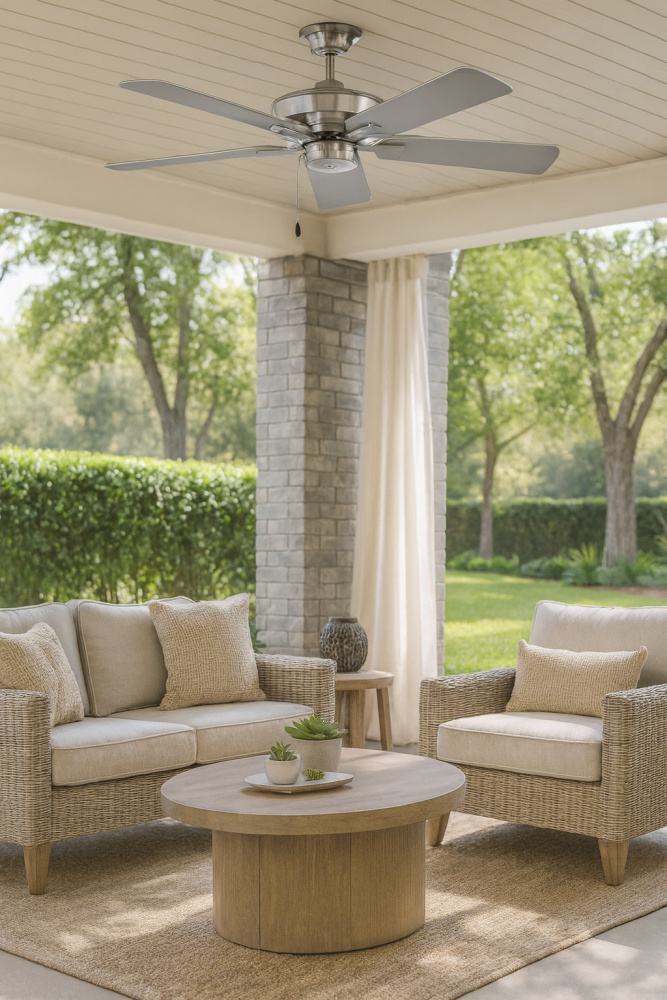 The Metro Wet ceiling fan evokes a sense of timeless tradition to indoor and outdoor settings. Composed of Composite blades, Metro is available in Brushed Nickel with Silver blades, Chalk White with Chalk White blades, Matte Black with Matte Black blades, and Metallic Matte Bronze with Walnut blades. Wet-rated, Metro Wet is versatile enough to be used for both indoor and outdoor spaces and is part of the Regency Collection.