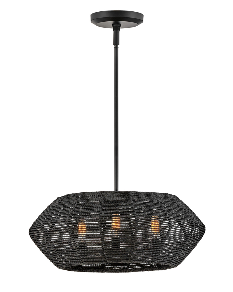 Luca's coastal vibe is permeated with a slightly exotic edge. The bold pendant showcases a robust, woven drum shade, and a full finished cluster for plenty of functional light offered in a variety of finish options. Luca is part of the Lisa McDennon Collection.