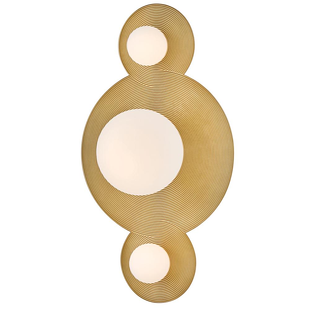 Evoking the concepts of eternity and limitlessness, Rhea’s continuously flowing loops of refined metal create a ribbed texture along its gracefully curved backplate. Dimmable, integrated LED lamping brings comfortable energy into any bathroom or small interior space. Rhea can be installed vertically, horizontally, or even as a flush mount on a ceiling.