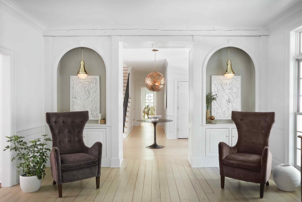 Oliver features an eye-catching sleek spun metal shade and etched opal glass shade beneath. Sleek metal bands and knobs add interest and reinforce its modern-meets-traditional style. Oliver is available in a robust lineup of finish combinations.