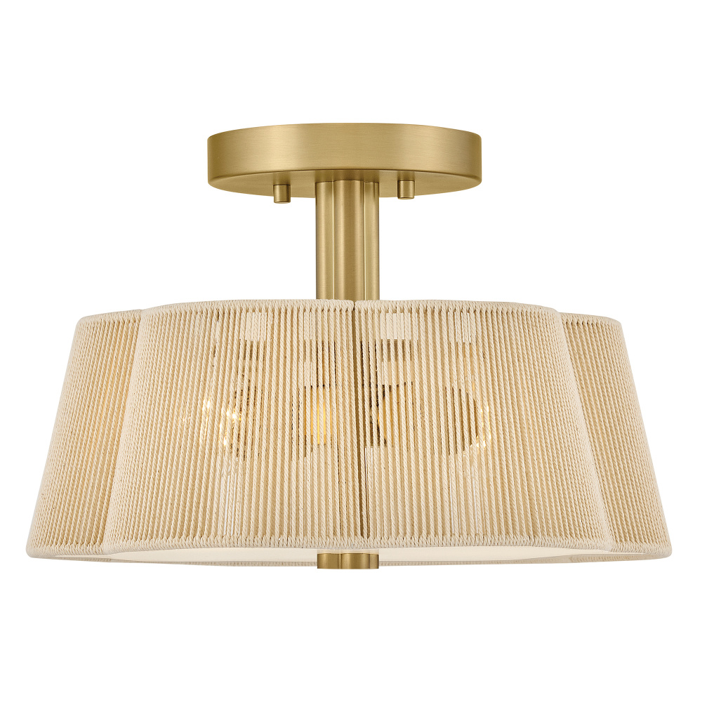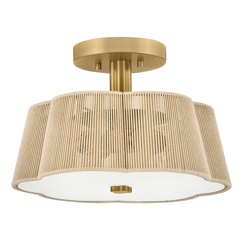 A chic yet casual decor statement infused with natural texture, Sasha’s subtly tapered, scalloped shade is hand-wrapped in natural-fiber cord, imparting an unexpected element of sheer softness to your decor. A clover-shaped Etched glass diffuser glows with welcoming illumination, secured by a complementing clover finial and a frame finished in Lacquered Brass.