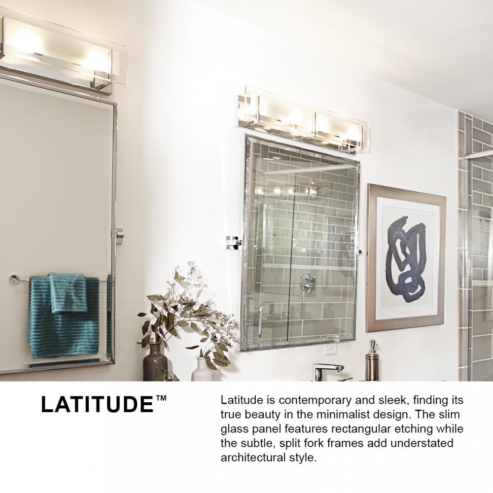 Latitude is contemporary and sleek, finding its true beauty in the minimalist design. The slim glass panel features rectangular etching while the subtle, split fork frames add understated architectural style.