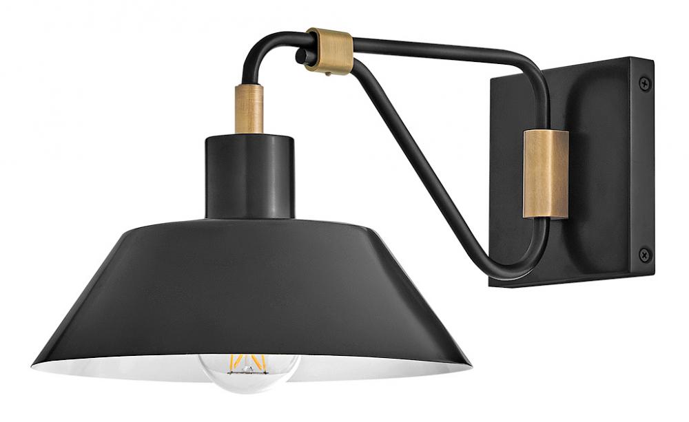 A modern twist on the industrial barn light, Brewster perfectly sets the stage for any décor style, indoors or outdoors. A large classically styled shade features a Black Oxide finish accented by chic Heritage Brass details.