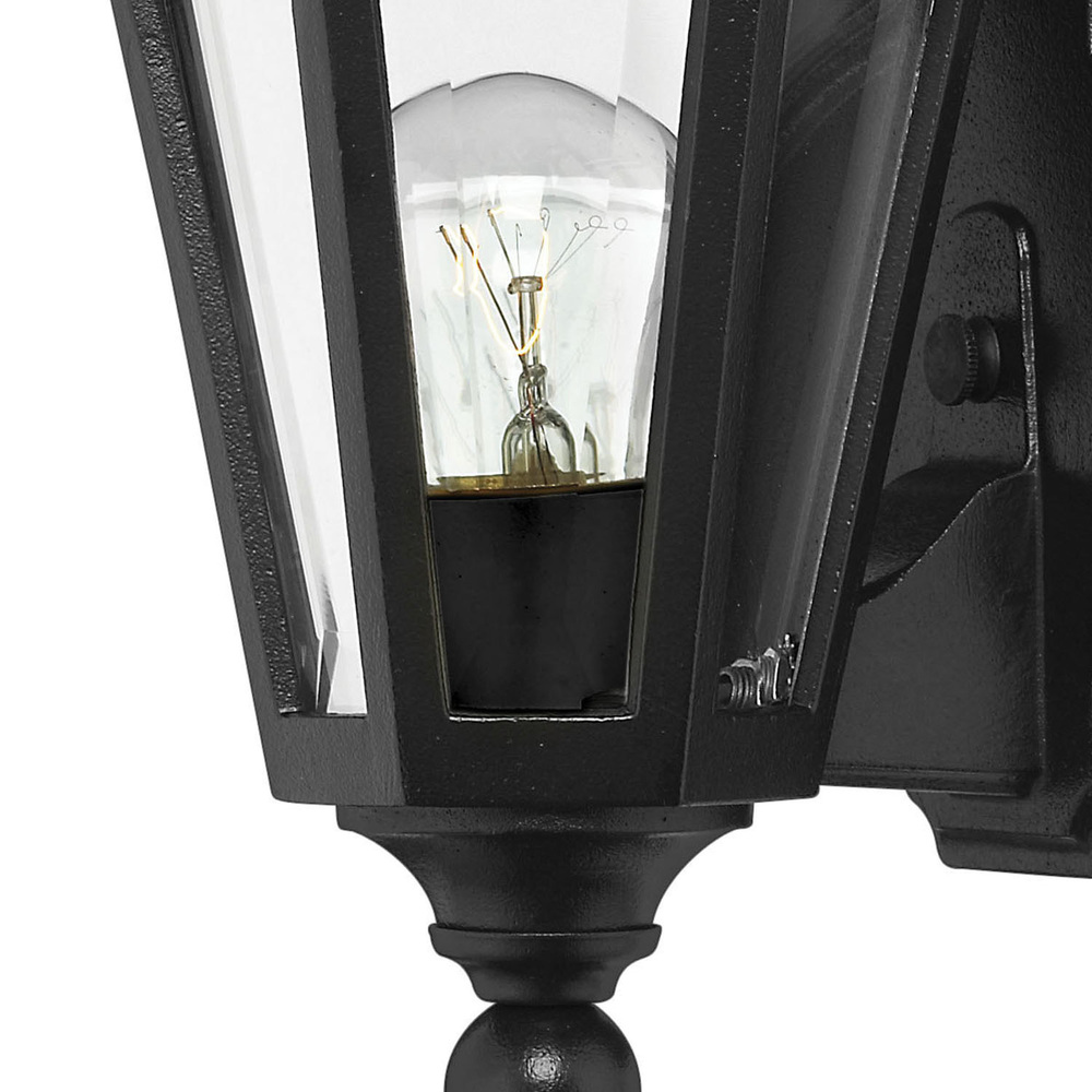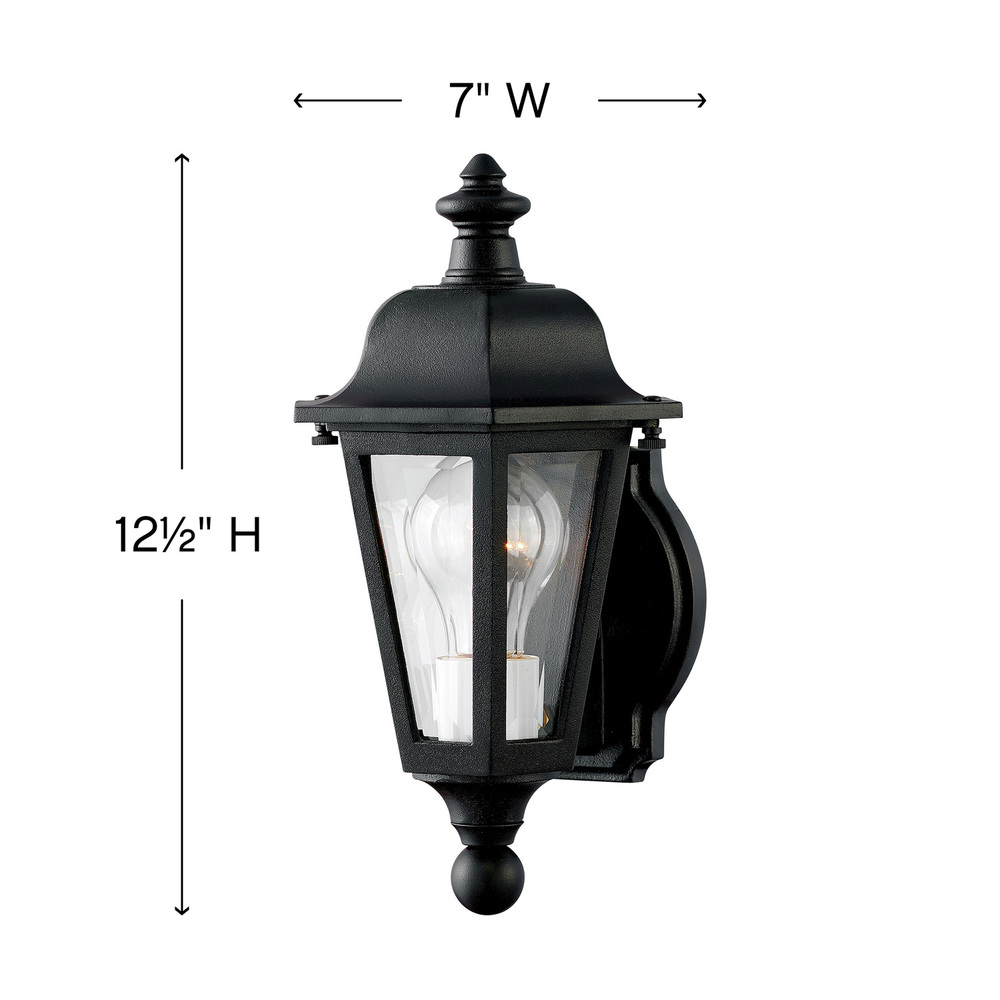 Manor House is a classic lantern design featuring durable cast aluminum, clear beveled glass panels and a bold Black finish. Select-A-Lite options come standard with both candelabra and medium based sockets.