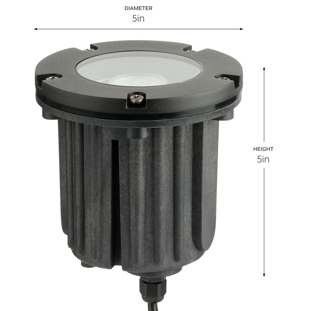Discretely illuminate landscape elements such as trees, walls, and flagpoles with the Black Brass Trim In-Ground. This fixture with a plastic sleeve option sits flush with the ground and casts light in an upward direction. Our 12V low voltage landscape drop-in fixtures are compatible with a wide selection of Professional and Contractor Series LED Lamps and are an economical choice for any design application.