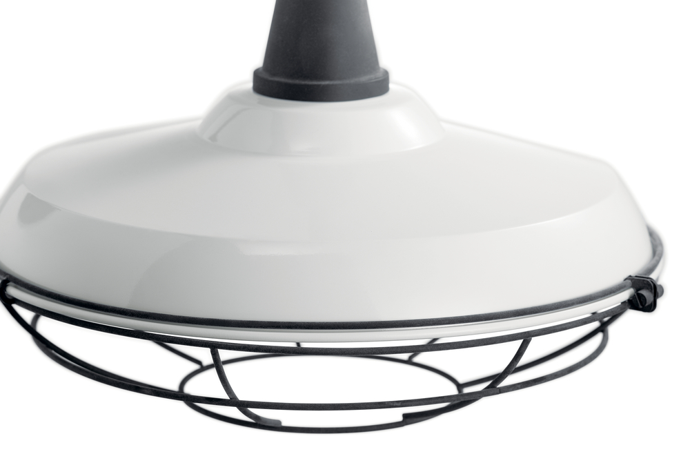 The caged design of the Pier 1 light outdoor convertible pendant/semi flush mount in White offers the vintage outdoorsy look, while the bright white interior enhances and reflects the light for essential nighttime illumination.