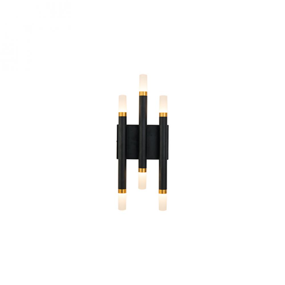 Cylindrical aluminum arms extend from square wall mount. Finely textured powder-coat finish. Tapered round translucent diffusers. Plated-brushed gold accent rings. Up and down light. Custom options available.