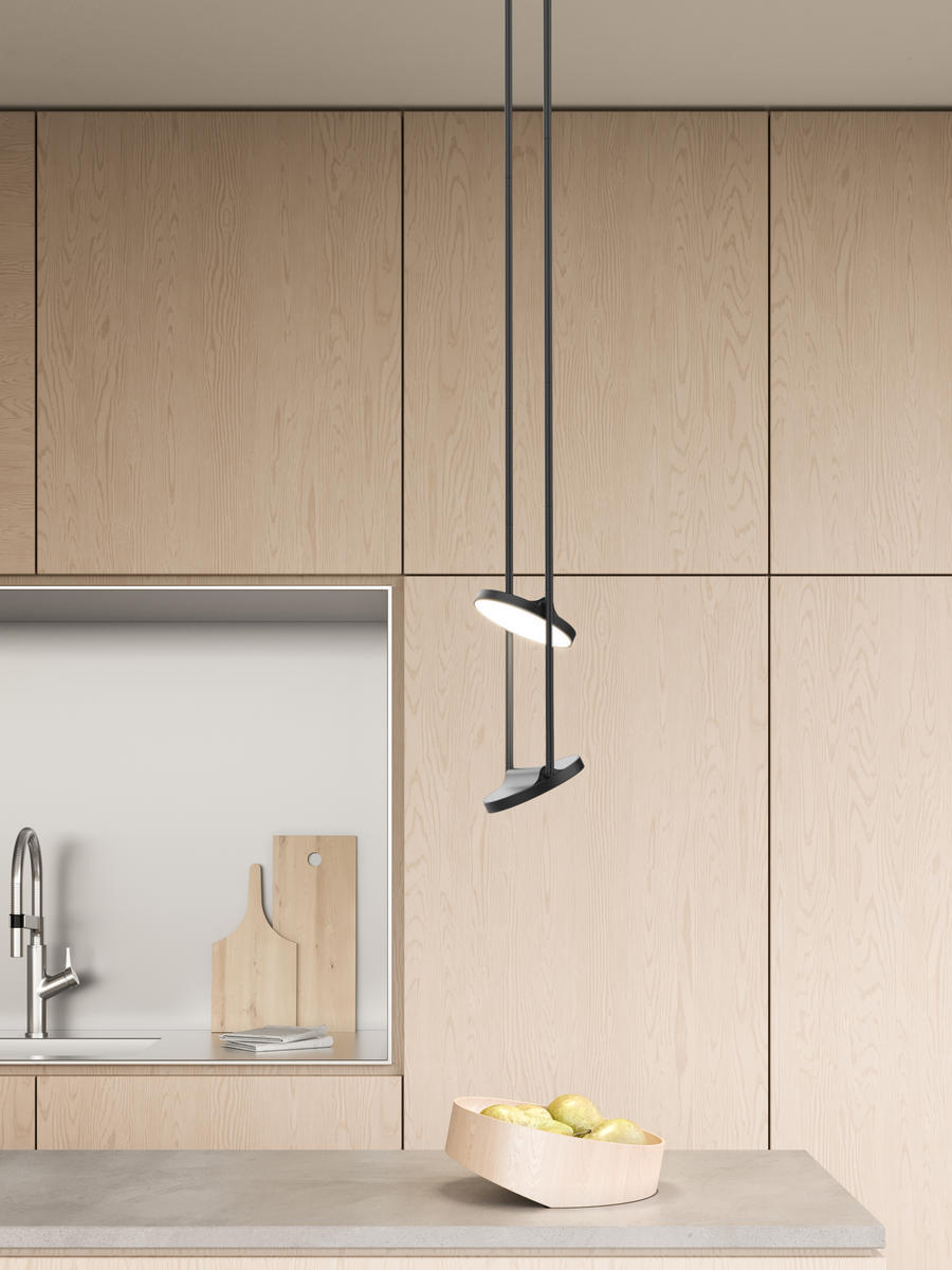 Pure geometry of the disks of illumination balancing on clean, thin lined structure is poetry in motion. Each disk of illumination can turn and twist to fit the needs and style of your space. The Novel Collection fits a large range of style and function with minimal elements.