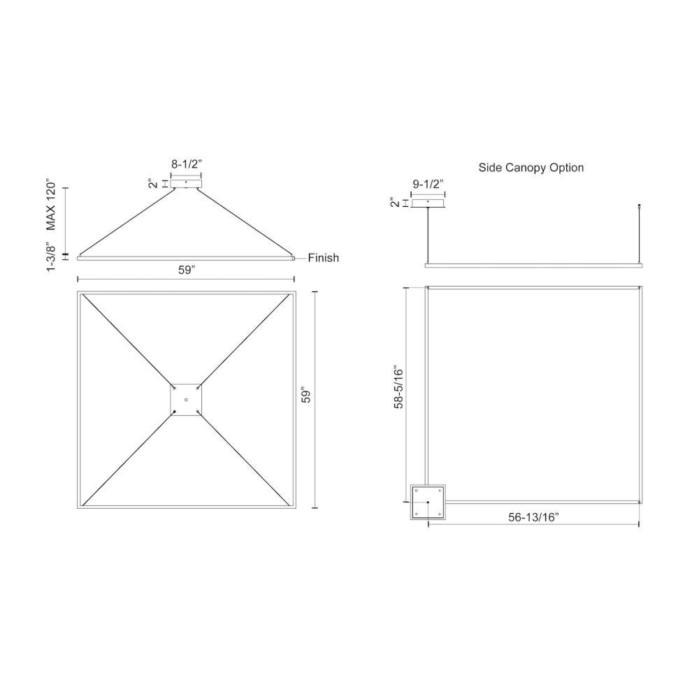 Extruded aluminum with rectangular profile. Flush silicone diffuser. Matte powder-coated finish. Down light. Duo canopy mounting style