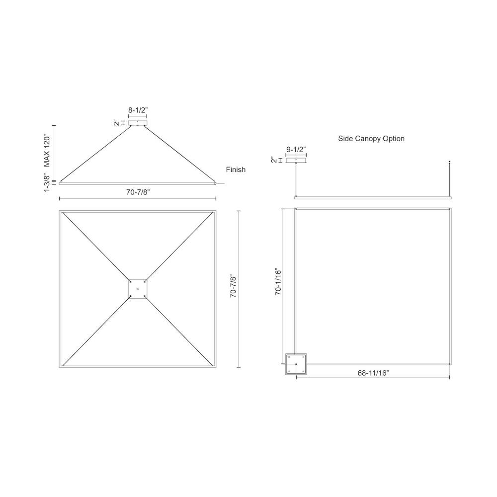 Extruded aluminum with rectangular profile. Flush silicone diffuser. Matte powder-coated finish. Down light. Duo canopy mounting style