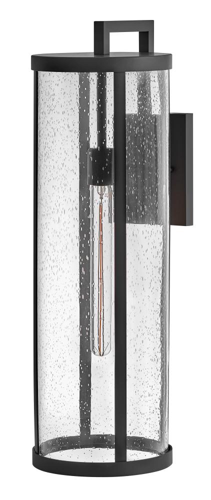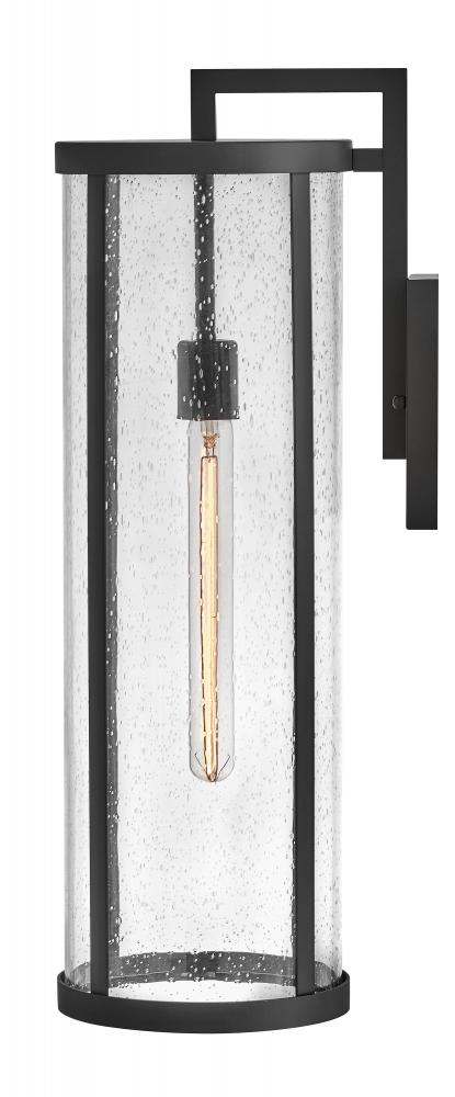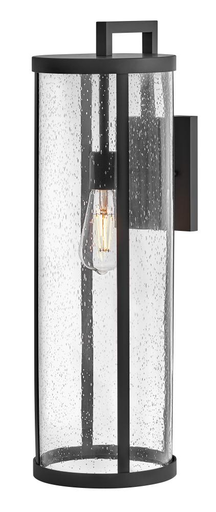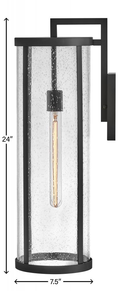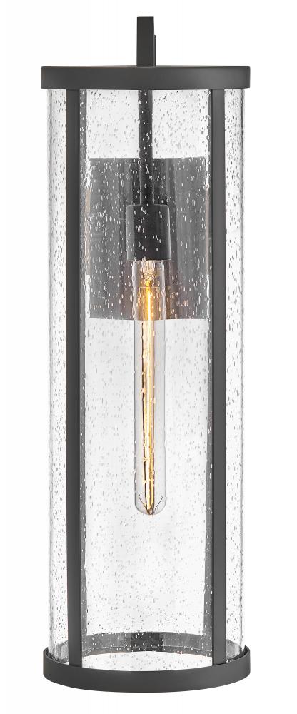 Alfie boosts curb appeal with effortless style. This transitional wall mount lantern features an easy-on-the-eyes cylindrical profile, bold Black metal frame and sizable clear seedy glass finessed to flatter any exterior. Pro tip: we recommend vintage filament bulbs to make Alfie really shine.