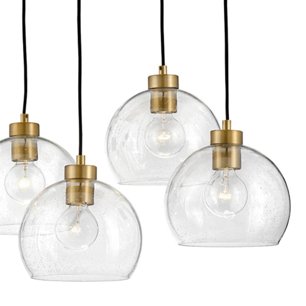 Your room will get rave reviews thanks to Rumi. This modern, art-forward fixture captivates with the chic fusion of clear seedy glass globes and a flawless Lacquered Brass finish. Design opportunities abound, with Rumi adding thrill to airy and cozy spaces alike.