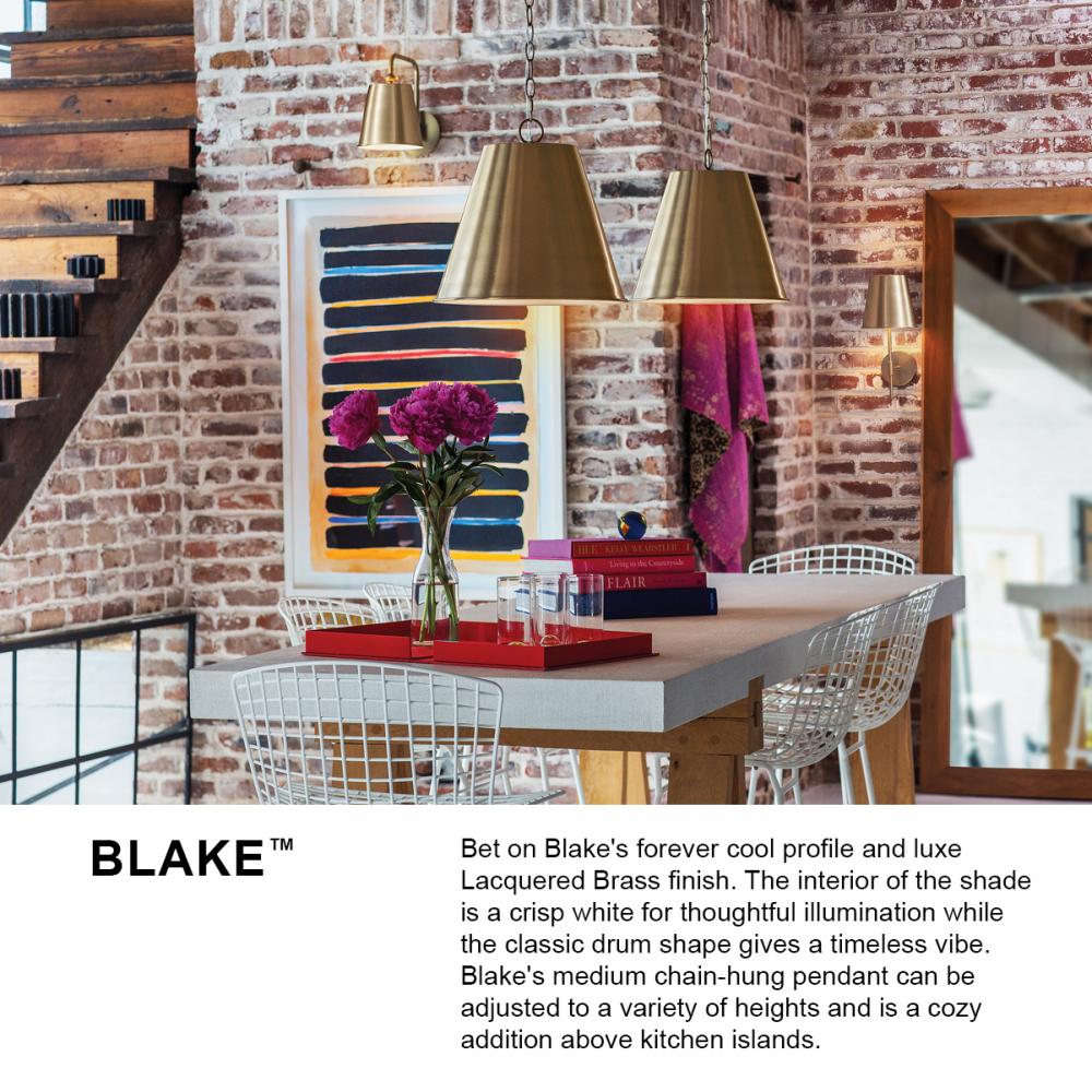 Bet on Blake’s forever cool profile and luxe finishes. Merging thoughtful illumination with a timeless vibe, Blake makes it easy to mix-and-match thanks to its versatile pendant and sconce options.