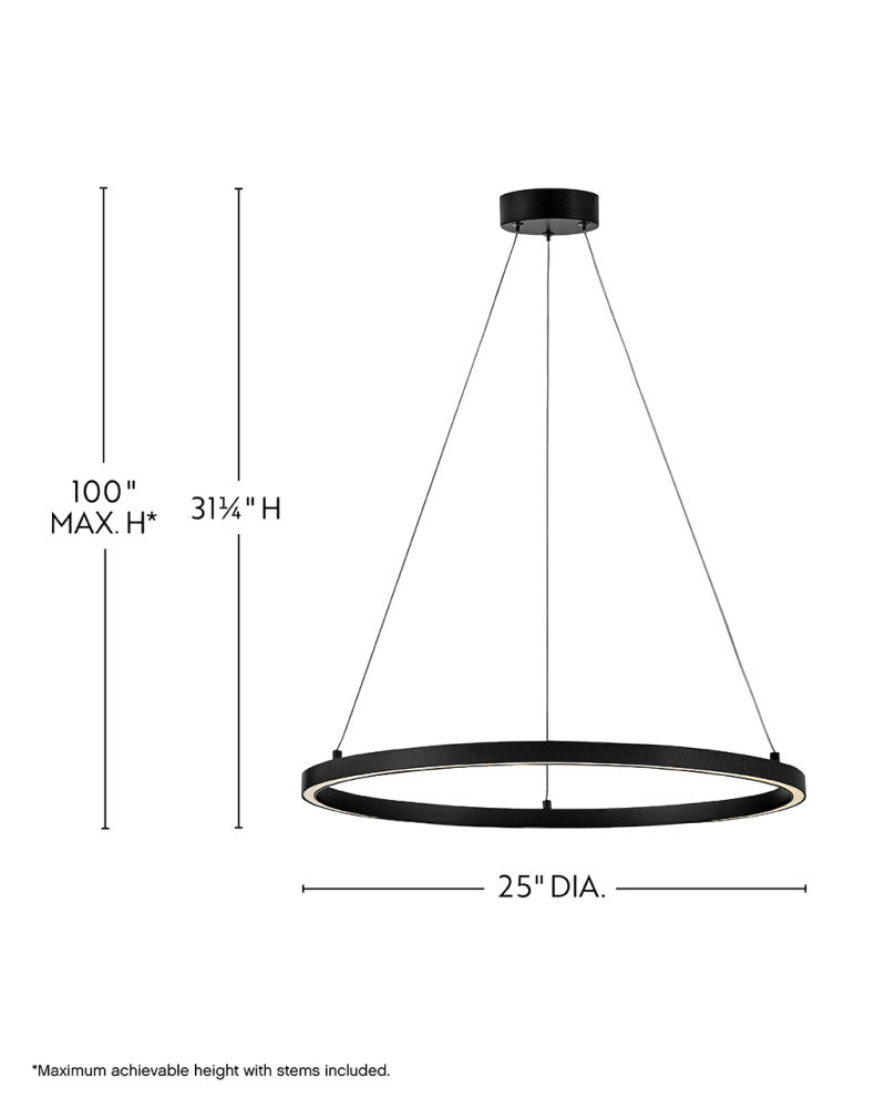 Kenna brings the ultimate modern sophistication to your home. The bold circular profile has a significant presence while maintaining a minimalist delicacy that complements any interior décor. The seamless ring design with integrated LEDs is hung with easily adjustable cables to help you match any style.