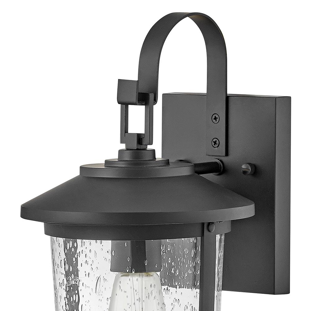 Classic and cool design elements merge in this vintage-inspired transitional 1-light outdoor lantern. Banks flaunts its substantial tapered clear seedy glass, captured in a dashing Black frame, to deliver a versatile vibe with a hint of European cool to complement a variety of facades.