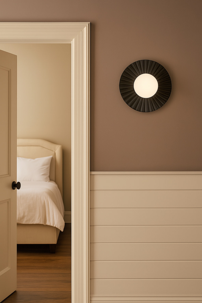 Convertible fixture can be hung as a sconce or flush mount.