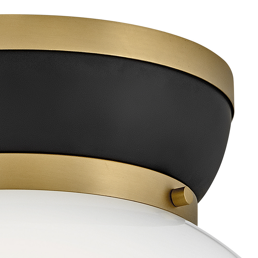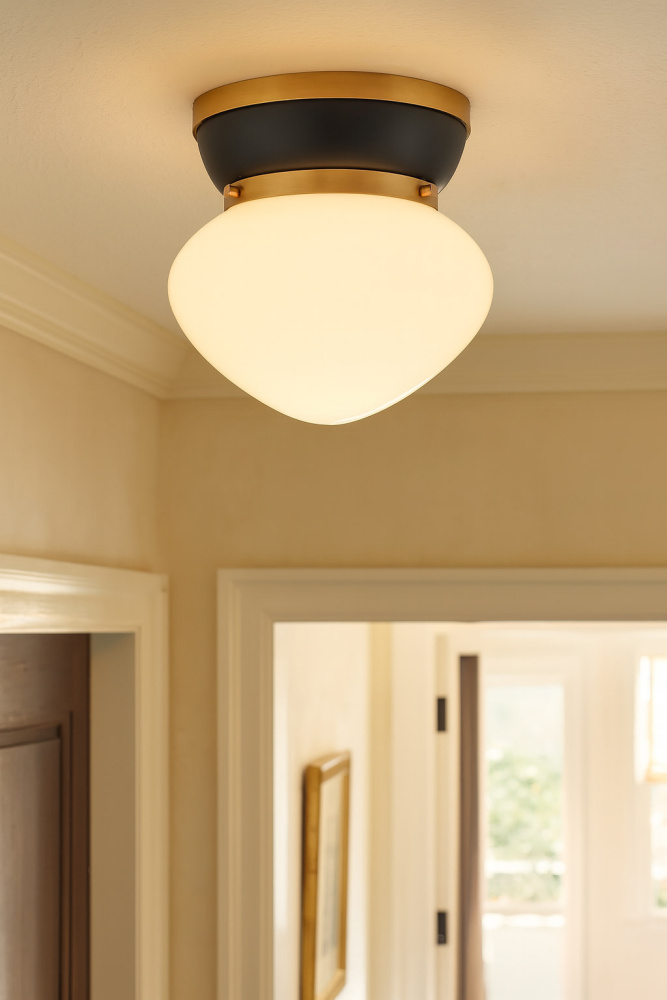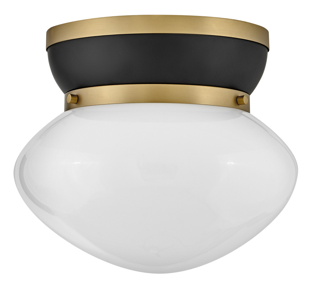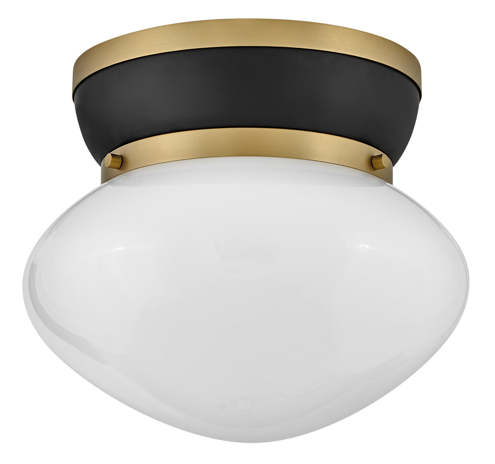 Lucy is a petite beauty that packs a big punch. The curved lines and captivating color combinations are like a whirlwind romance with classic style. The schoolhouse modern shade and bands of Lacquered Brass finish off the timeless love story with a softness that fits in any space or place.