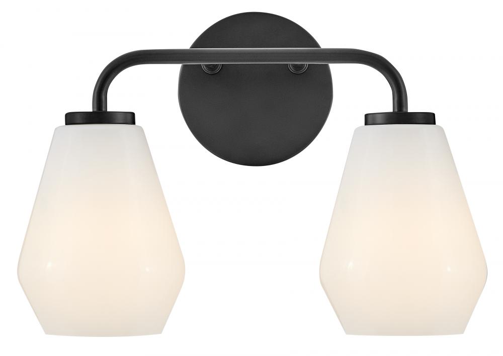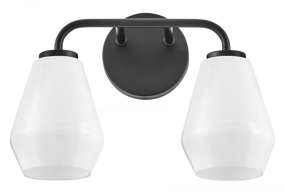 Subtle geometric elements find harmony within the sleek, curved lines of Gio. The cased opal glass covers the space in functional, diffused light while providing a nice contrast to the bold variety of finish colors. Gio’s transitional glam design and clean profile add to any bath décor.