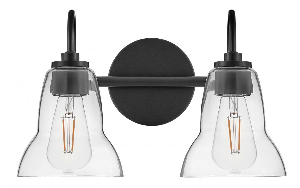 Vera’s unique, shapely form takes the traditional bell-shaped shades to a new level. Plenty of light shines up or down from the clear glass, making it a functional choice for main baths and powder rooms alike. Finished in Black or Lacquered Brass, Vera’s chic profile brings transitional style to any space.