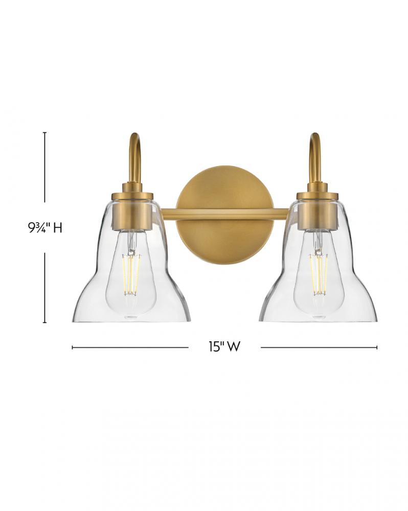 Vera’s unique, shapely form takes the traditional bell-shaped shades to a new level. Plenty of light shines up or down from the clear glass, making it a functional choice for main baths and powder rooms alike. Finished in Black or Lacquered Brass, Vera’s chic profile brings transitional style to any space.