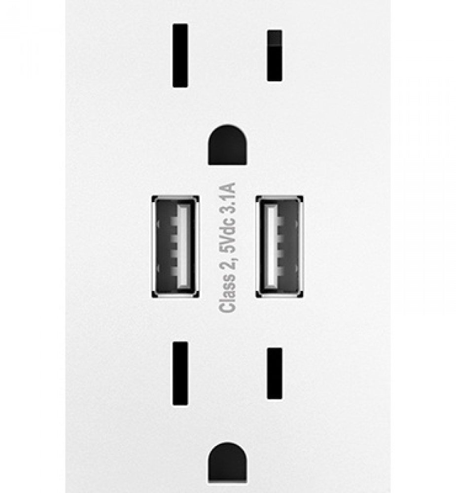 Dual USB Plus-Size Outlet Combo with Matching Wall Plate by Legrand Canada
