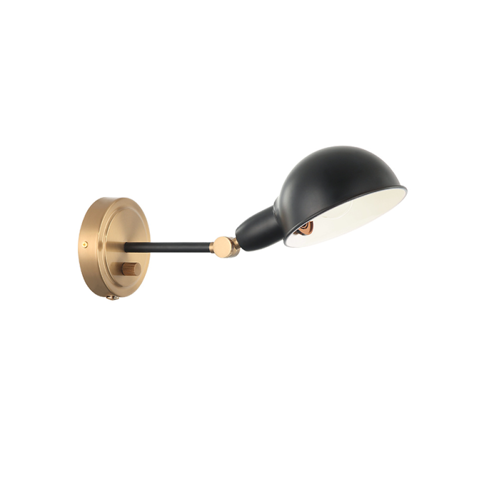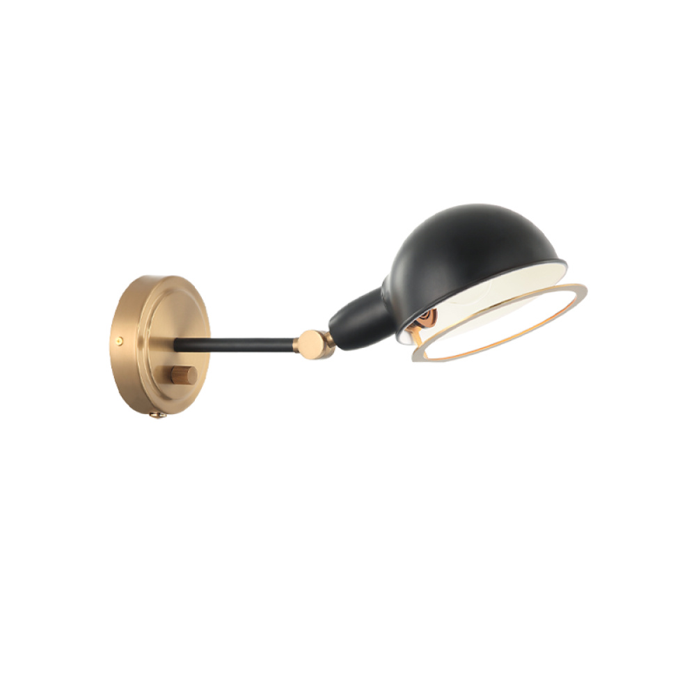 1 LT "BLARE" AGED GOLD WALL SCONCE E26 - BLACK METAL SHADE