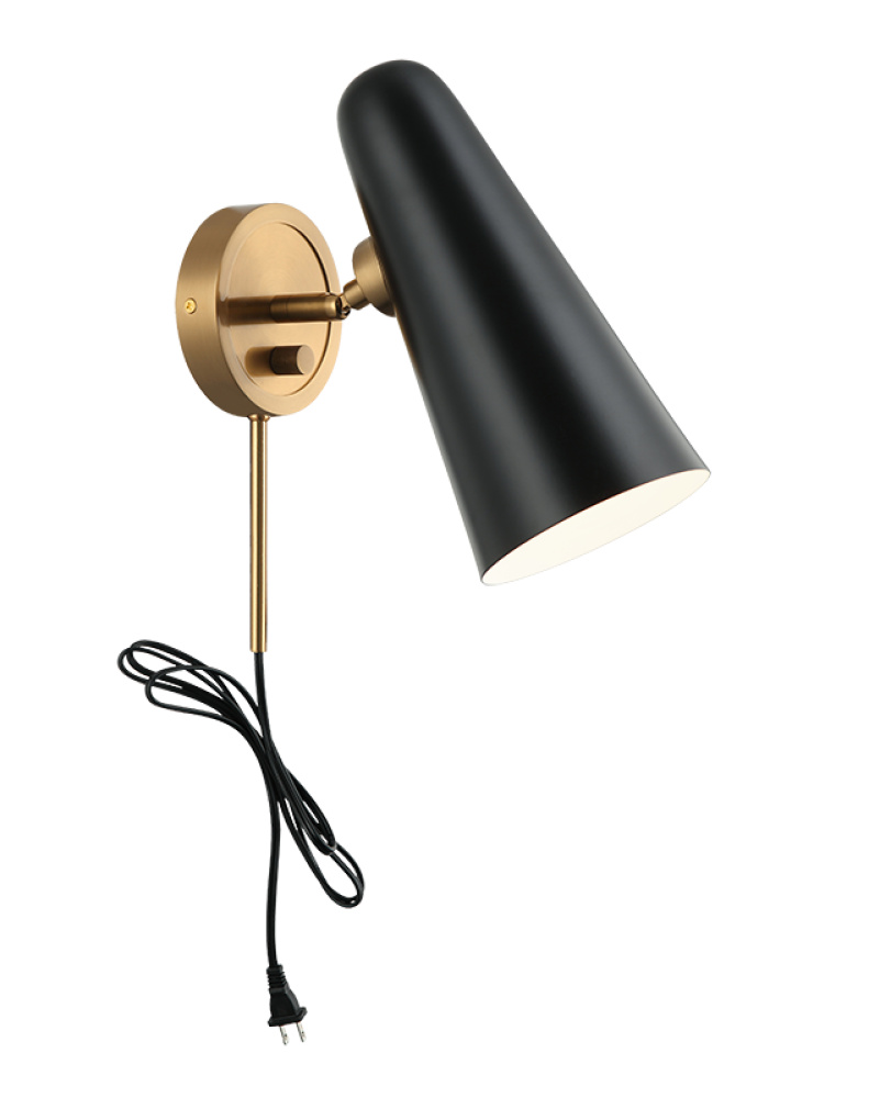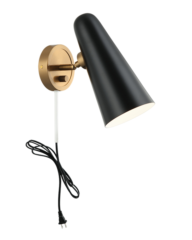 The clean design of this series is inspired by a retro spotlight but with a modern look and finish. The Blink series comes in 2 finishes combinations: Aged Gold Brass with White and Aged Gold Brass with Black. Featuring a dimmable light and adjustable shade, Blink will add an additional modern element.