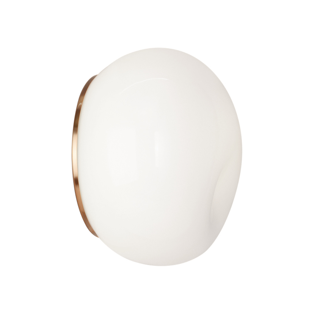 A contemporary flush mount and vanity series. Gelasin features a thin canopy attached to a hand blown Opal glass with a unique dent which adds to the aesthetics. Available in 2 sizes and 2 finishes