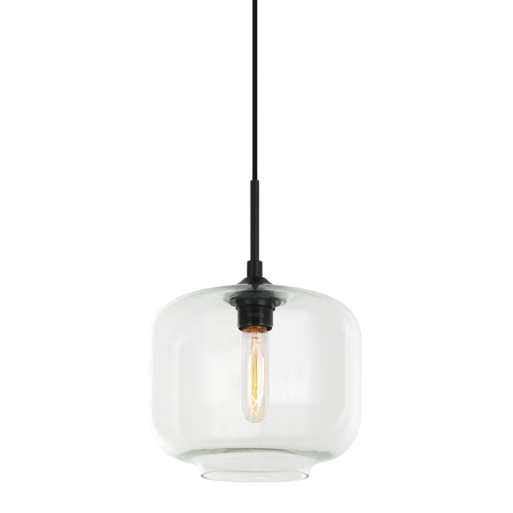 Clean, simple hand-blown glass will redefine any space. Two glass color options are available in all shapes. Single black canopy with black cord included.