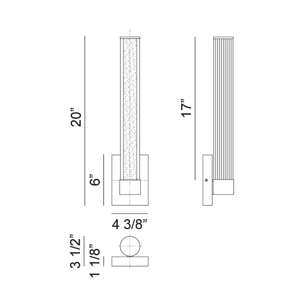 Macie The Macie wall sconce is an integrated LED covered with a white tube and then finished with ribbed glass resulting in a clean sophisticated style. The contrast between the smooth white tube and the textured ribbed glass creates a tasteful elegant energy.