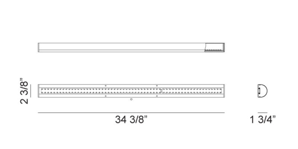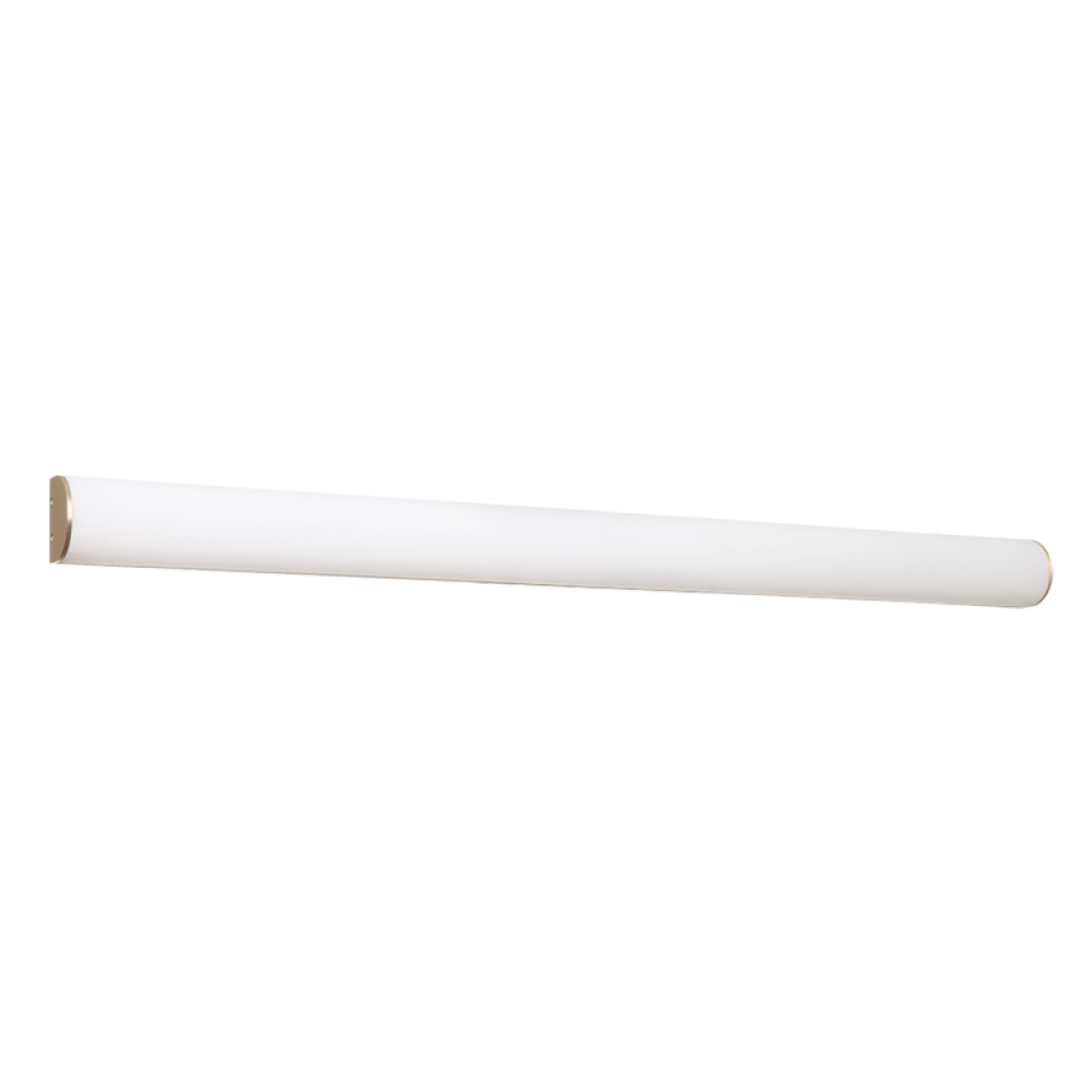 A minimal yet striking series of LED vanity comprised of a subdued metal canopy paired with a semi-cylindrical white acrylic lens. Available in 2 sizes and 2 finishes: Oxidized Grey and Oxidized Gold.