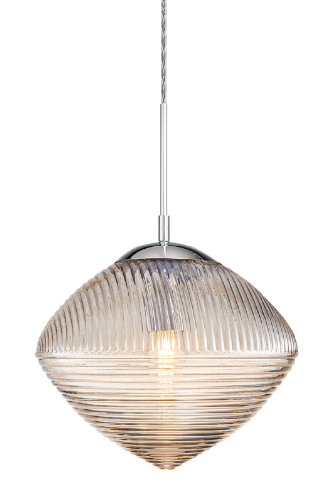 Pendant with a spiral and clean lined design in Cognac or Smoked glass would be a stunning focal point over an island or cozy lounge area. Comes in 3 styles of glass in Chrome and Matte Black canopy.