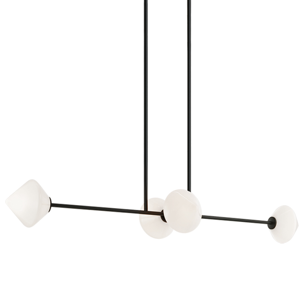 Novo is modern yet classic – available in the form of chandelier, wall sconce, and flush mount. The rods and base are either Aged Gold Brass or Black finish paired with a contrasting Opal or Clear round glass and diamond shaped glass. The style is very versatile and will add beauty to multiple rooms.