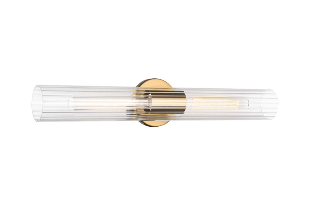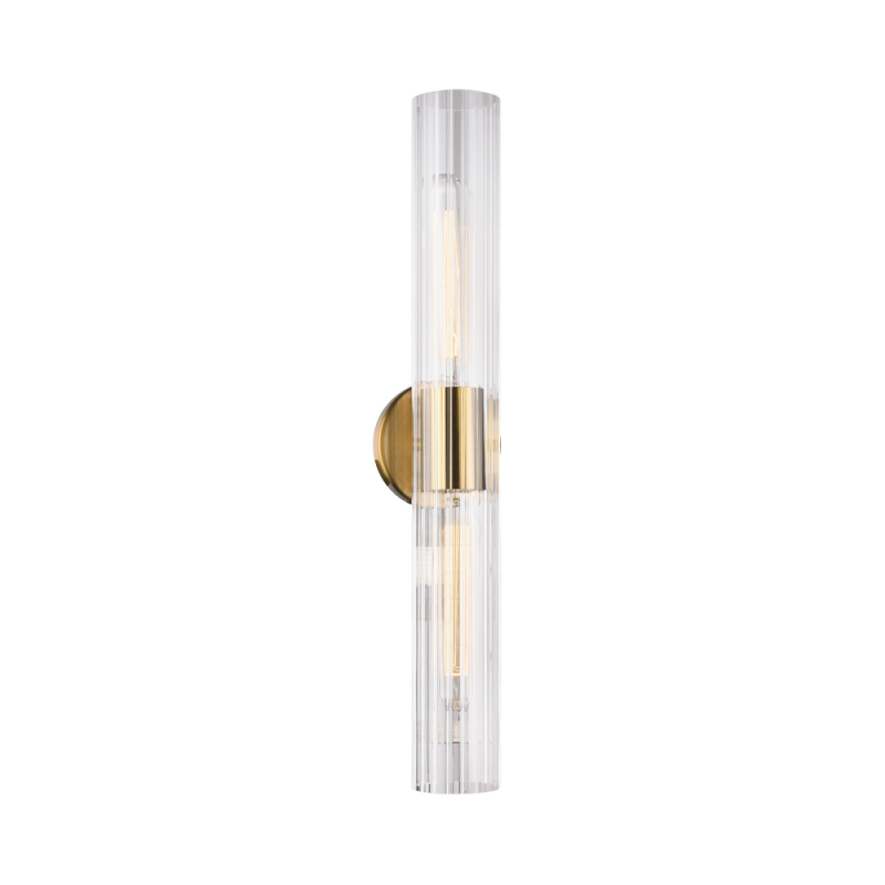 An elegant collection that features intricate detailing of clear ribbed glass. The versatility of this collection allows the fixtures to be mounted vertically and horizontally. Odette is available in 3 finishes: Aged Gold Brass, Black and Chrome as well as 2 sizes; a perfect touch to illuminate any space.