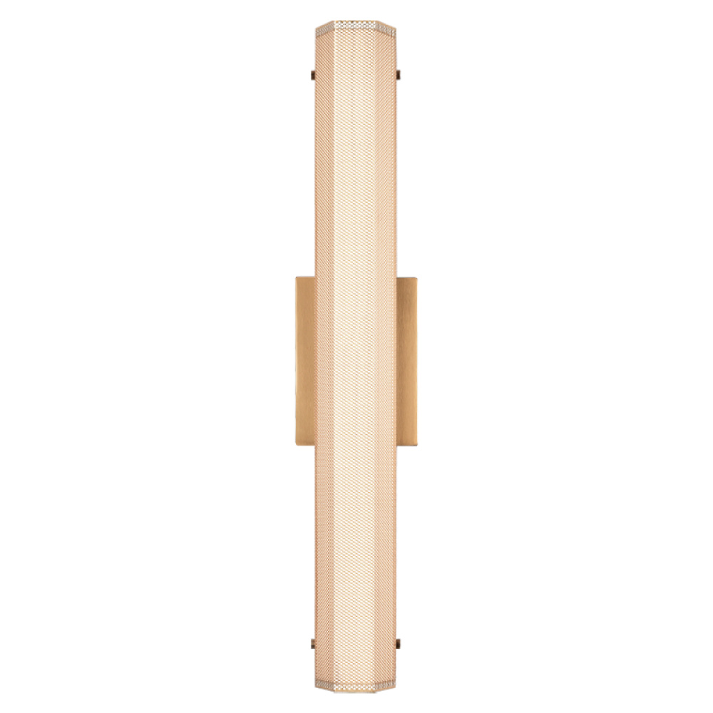 Perlermos is an exciting new LED wall sconce – an acrylic shade covered in a fine metal mesh diffusor for an interesting texture. Available in 18” and 24” and in either Aged Gold Brass or Chrome finish.