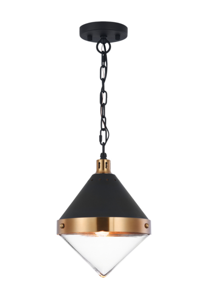 A fusion design that combines medieval style with modern elements. Sphericon is available in Matte Black with Aged Gold Brass or Matte Black with Chrome. Both colour options are complete with a clear glass shade or an opal glass shade. LIGHTBULBS NOT INCLUDED