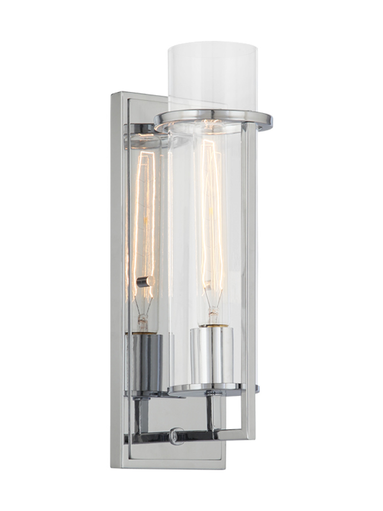 A modern creation of the candle sconce. Tubulaire's clear glass highlights the basic form of this timeless wall sconce. Available in Chrome or Matte Black.