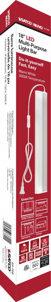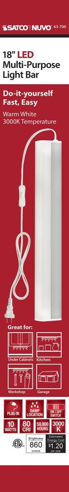 Satco's 63-700 LED multi-purpose light bar offers ease of installation and our most advanced LED technology for countertops, shelves, workbenches, and any craft or workspace. This 10-watt under cabinet light bar makes it easier to light larger areas, a