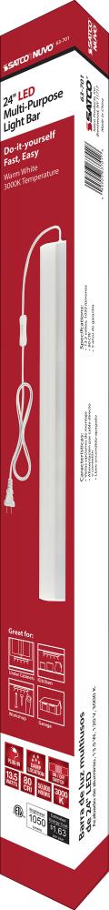 13.5W LED Under Cabinet Light Bar; 24 inches in length; 3000K; 1050 Lumens; 120V by Nuvo