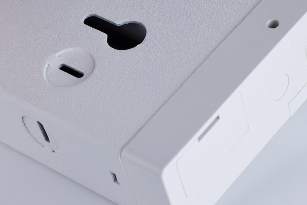 Two mounting options to best fit your installation: Use the integrated mounting screws or standard keyhole mounting