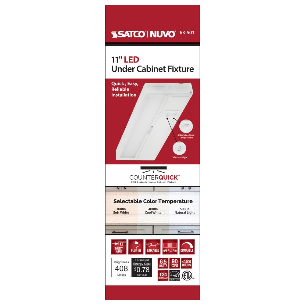 6.5 Watt; 11 Inch LED White Under Cabinet Light; CCT Selectable; 50000 Hours by Nuvo