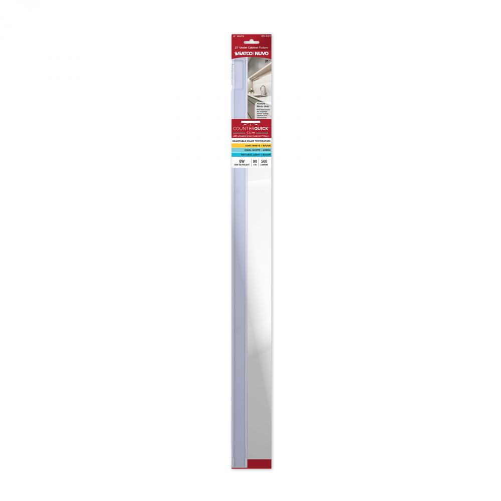 Add modern sophistication to your space with SATCO NUVO's 63-403 CounterQuick Slim 21-inch undercabinet fixture in white. This 8-watt light features an ultra-slim profile and selectable color temperatures (3000K/4000K/5000K) for the perfect balance of
