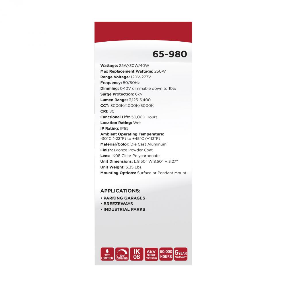8.5 Inch LED Field Selectable Canopy Fixture; 25/30/40 Watts; 3K/4K/5K CCT