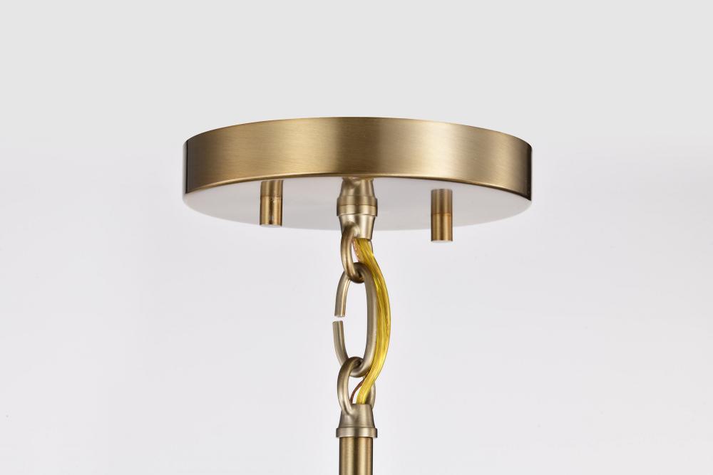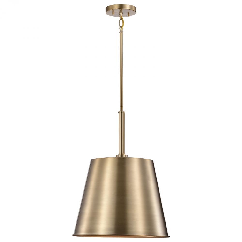 The Alexis 60-7938 large pendant showcases a stylish and understated lighting solution for today's home. The burnished brass finish is sophisticated and modern on the canopy, rod, and matching metal shade, unifying the overall artistic vision of the de