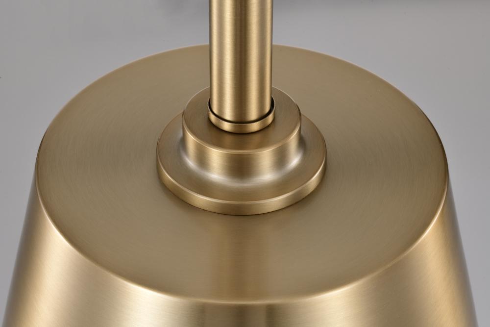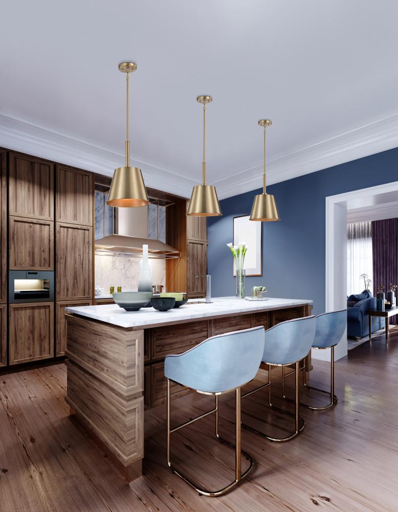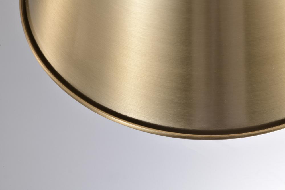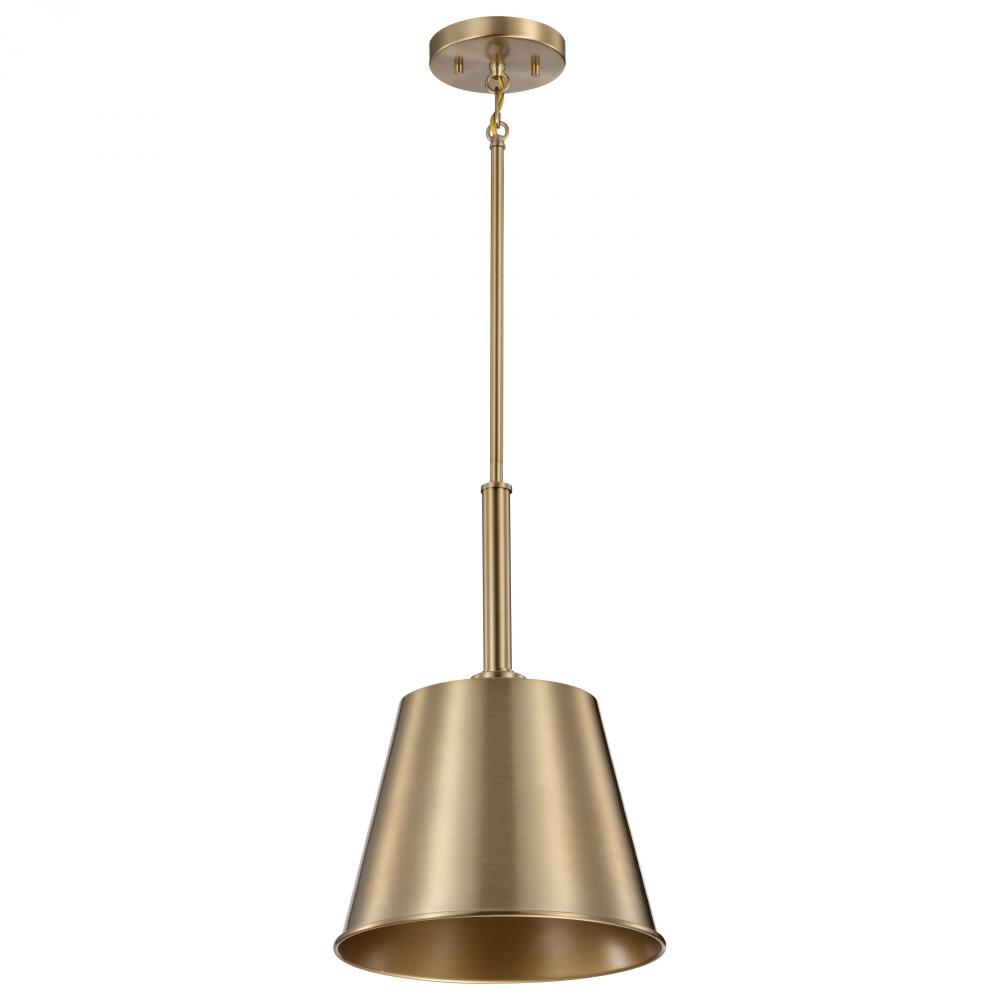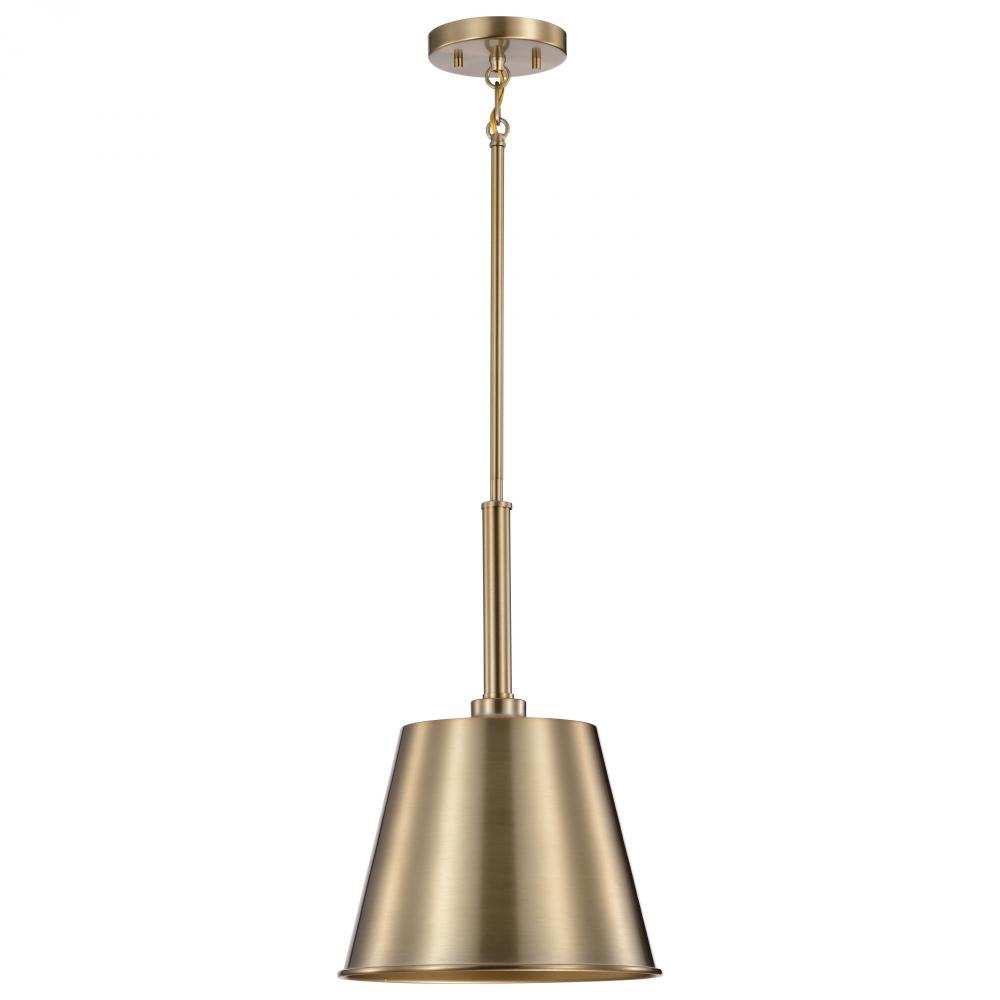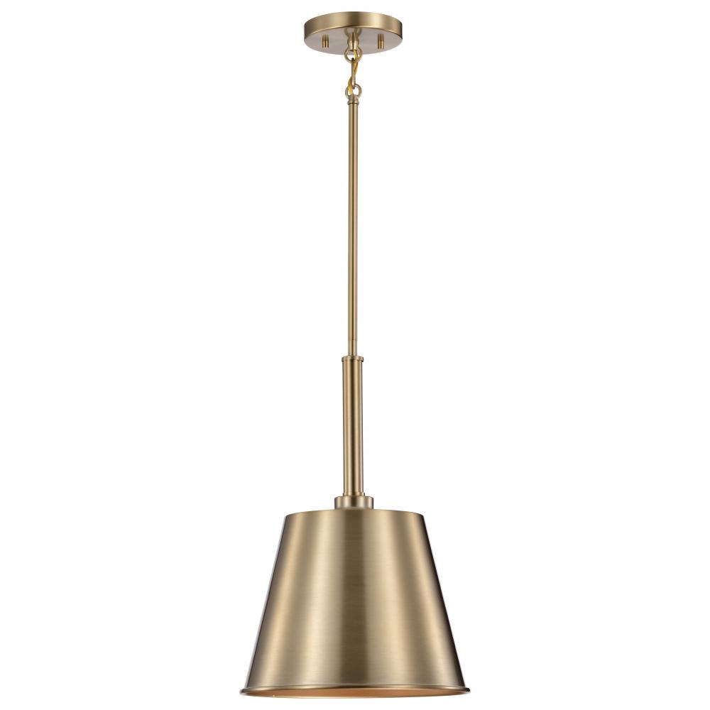 The Alexis 60-7939 small pendant showcases a stylish and understated lighting solution for today's home. The burnished brass finish is sophisticated and modern on the canopy, rod, and matching metal shade, unifying the overall artistic vision of the de