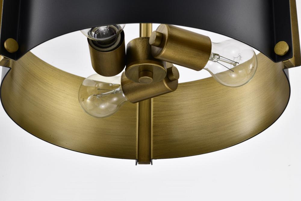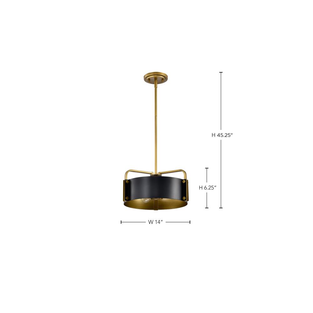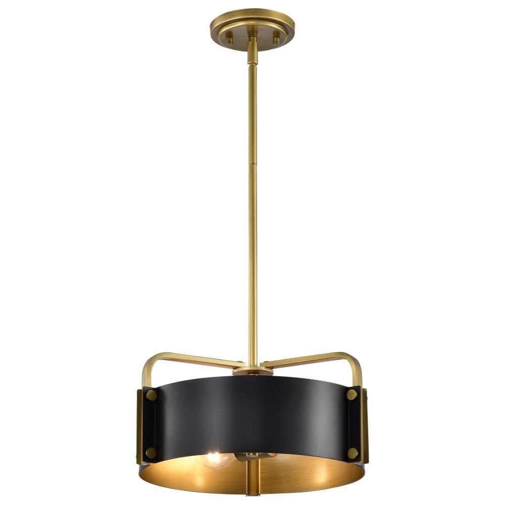 Altos 3 Light Small Pendant; Matte Black and Natural Brass Finish