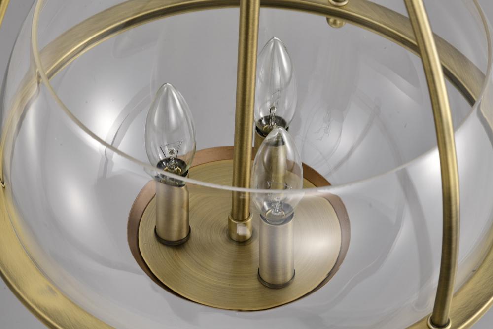 Amado 3 Light Pendant; 14 Inches; Vintage Brass Finish; Clear Glass