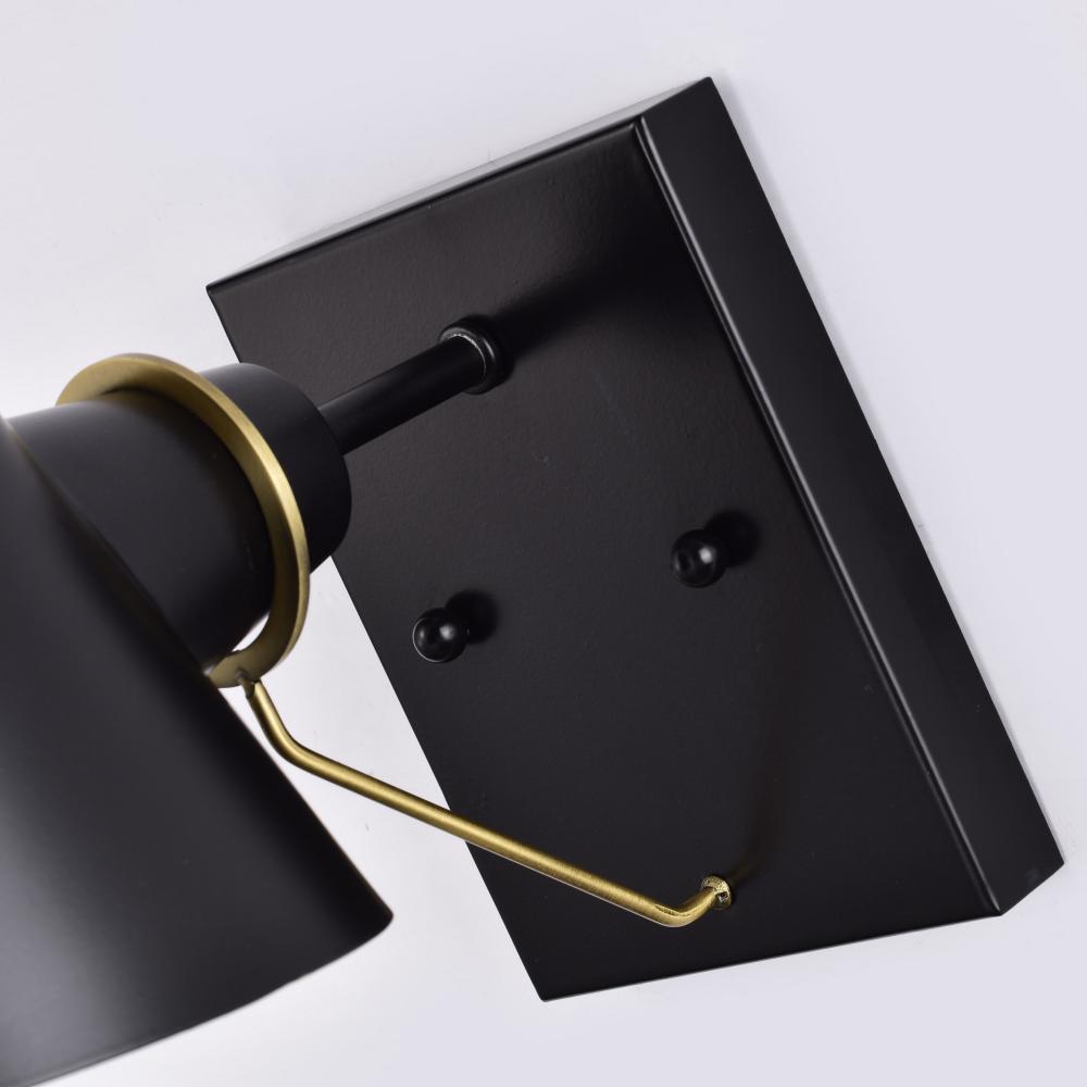 The Baxter 60-7381 vanity light does not disappoint with its modern design and impressionable style. The black shade is finely cut at an angle and features a white interior to maximize the light output. The lustrous burnished brass stem attaches from the l